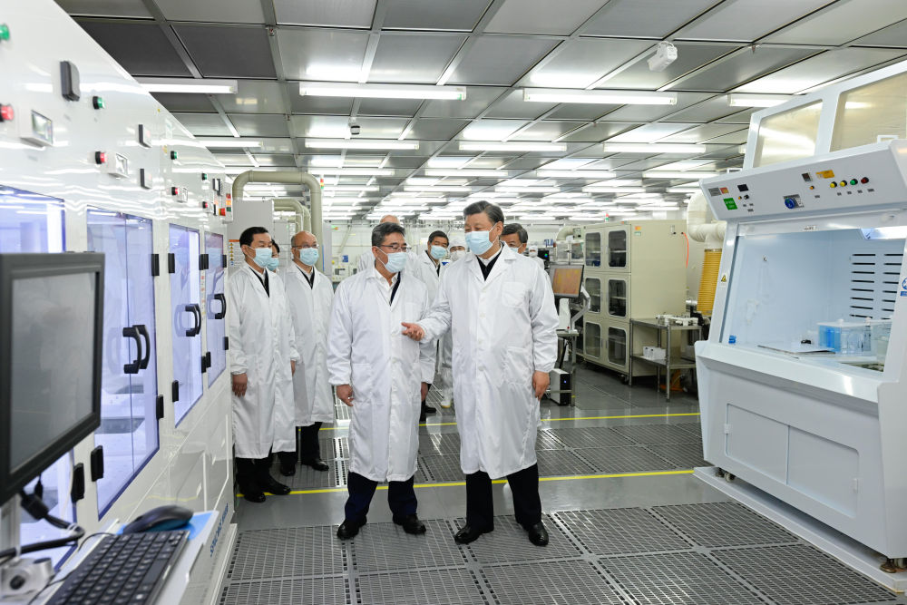2023年5月11日至12日,习近平在河北考察,并主持召开深入推进京津冀协同发展座谈会。这是12日上午,习近平在位于石家庄市的中国电科产业基础研究院生产车间考察。