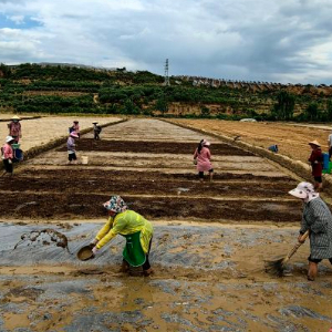 2024年4月21日,云南省永仁县维的乡夜可腊村的村民在进行水稻育秧。新华社发