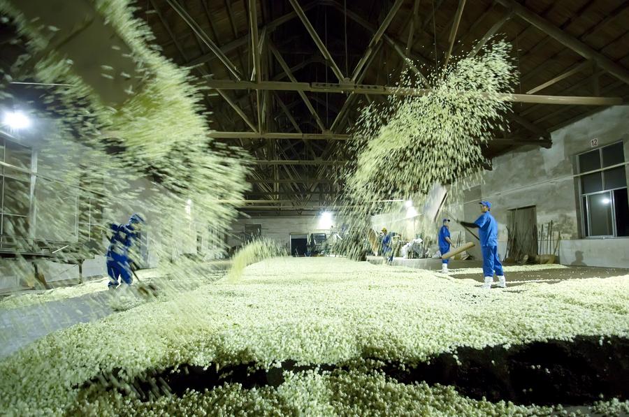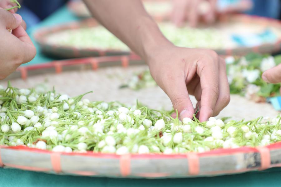 窨制工艺将茉莉花香融入茶中。(新华社发)吴其英 摄