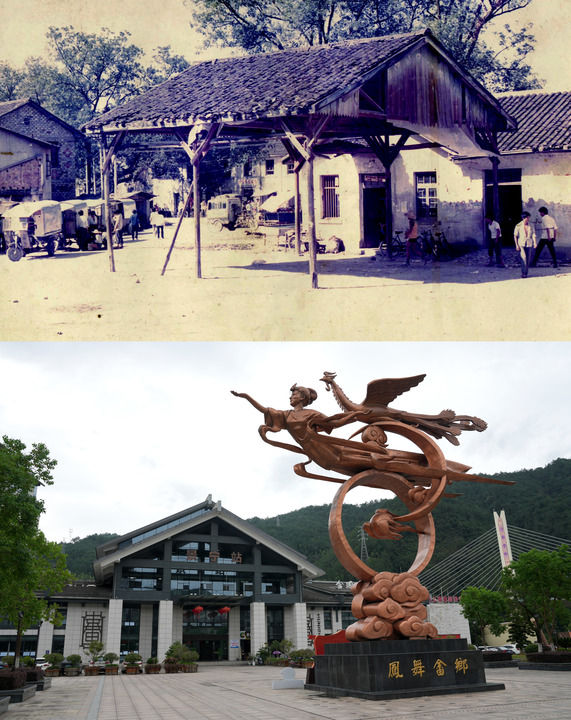 拼版照片,上图为昔日的景宁县汽车站(资料照片);下图为如今的景宁客运中心(新华社记者韩传号2024年6月27日摄)。新华社发