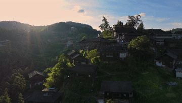 控拜村的传统民居依山而建,鳞次栉比(7月10日摄)。