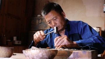 控拜村村民在银片上雕刻花纹(7月11日摄)。新华社发(余天英 摄)