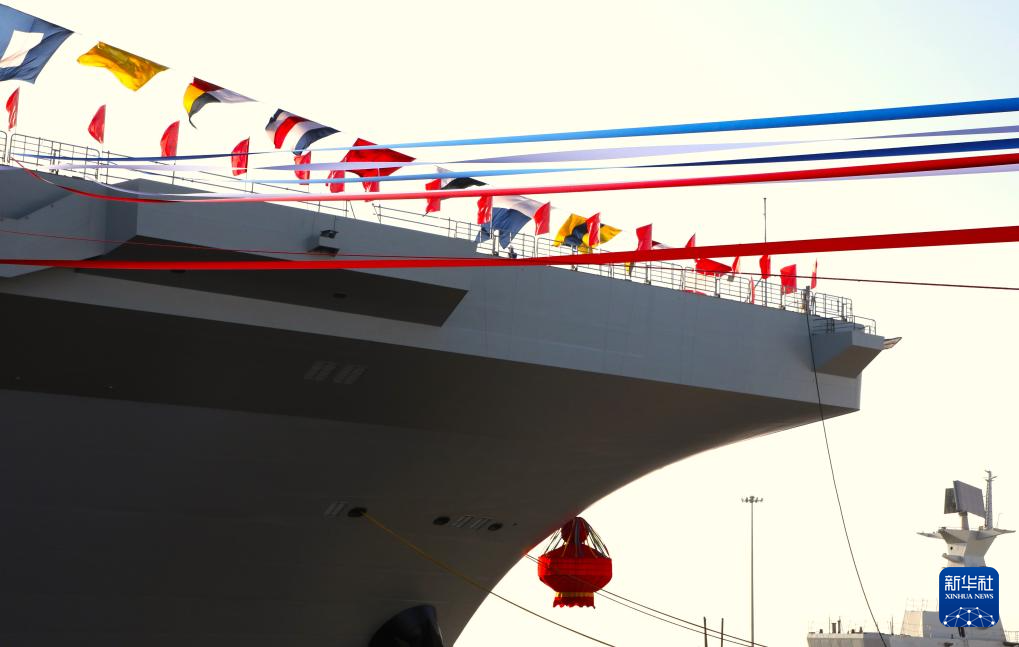 12月27日上午,我国自主研制建造的076两栖攻击舰首舰下水命名仪式在上海举行。新华社发(蒲海洋 摄)