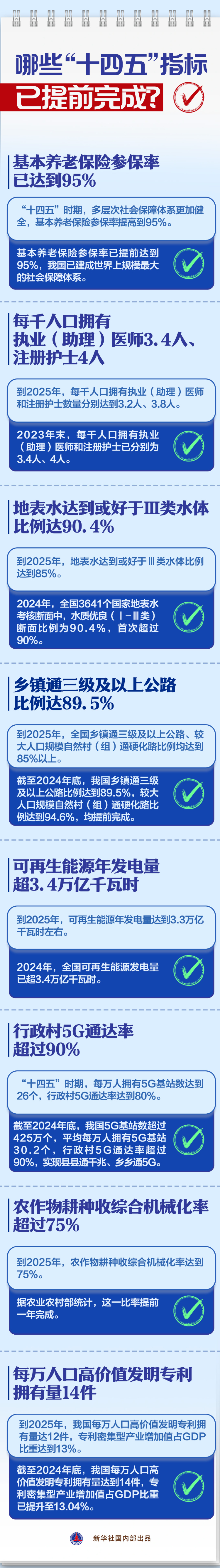 新华社北京3月5日电 题:哪些“十四五”指标已提前完成?