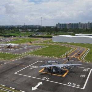 空中俯瞰停在机坪上的V2000CG凯瑞鸥电动垂直起降航空器(7月22日摄,无人机照片)。