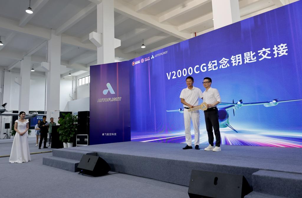 这是V2000CG凯瑞鸥电动垂直起降航空器交付仪式现场(7月22日摄)。