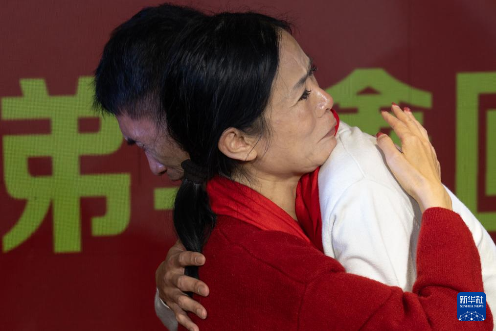宴会仪式上,姐弟二人再次紧紧相拥。台上台下,不少人默默拭泪,用镜头定格这来之不易的团圆。