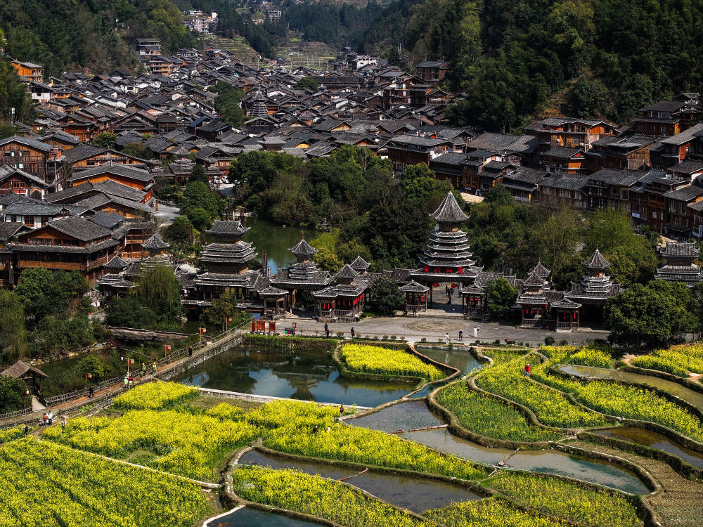 这是2025年3月18日拍摄的贵州省黎平县肇兴侗寨(无人机照片)。新华社记者 杨文斌 摄