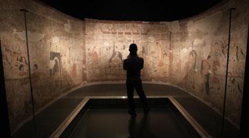 11月18日,在位于法国巴黎的吉美国立亚洲艺术博物馆,一名观众参观“中国·唐——一个多元开放的朝代(7至10世纪)”展览。