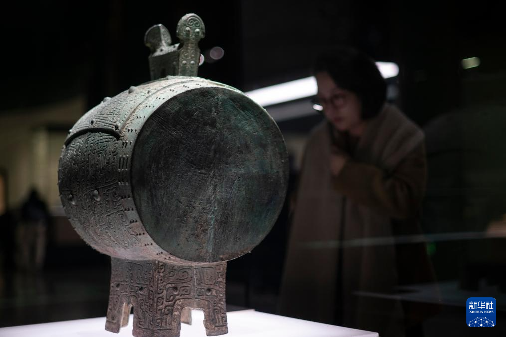 12月31日,观众在参观兽面纹铜鼓。