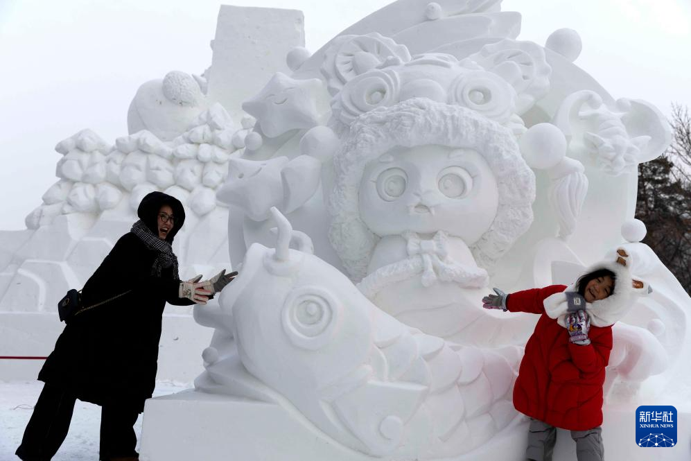 雪雕艺术添彩冬日哈尔滨