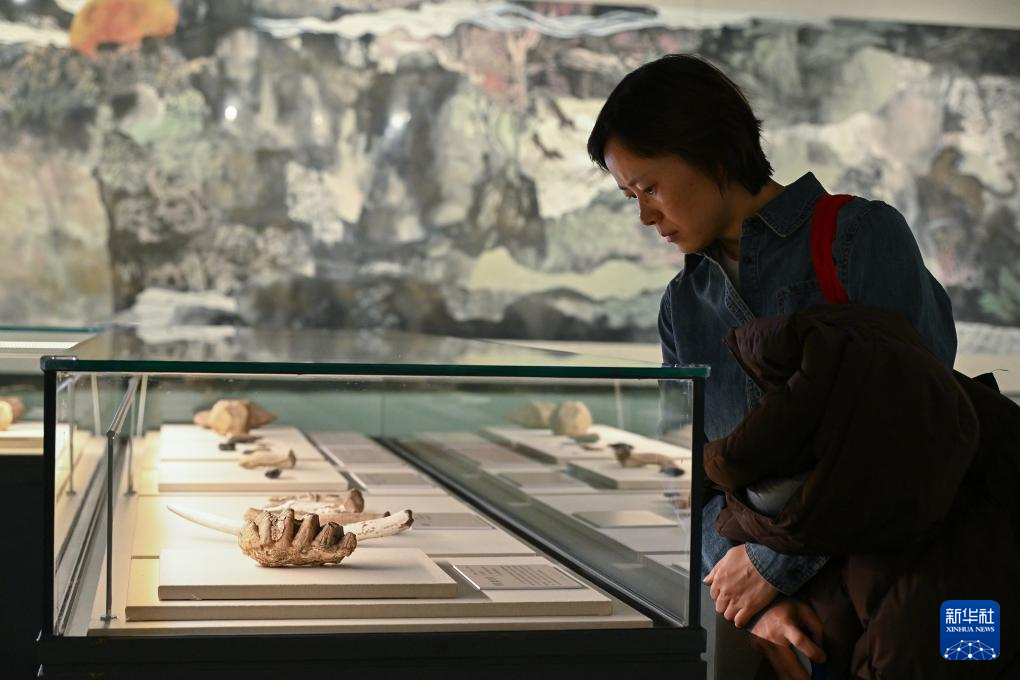 1月21日,参观者在“万古长歌——湖南史前文明图卷展”上观看湖南史前文明考古文物。