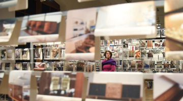 2月27日,一名参观者在舟山美术馆内拍摄。