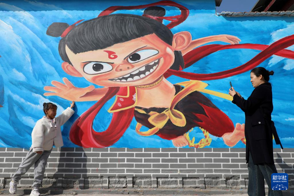 近日,随着《哪吒之魔童闹海》电影热映,各地哪吒主题墙绘吸引人们打卡拍照。