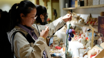 3月26日,参观者在宁夏非遗麻编传承基地选购文创产品。