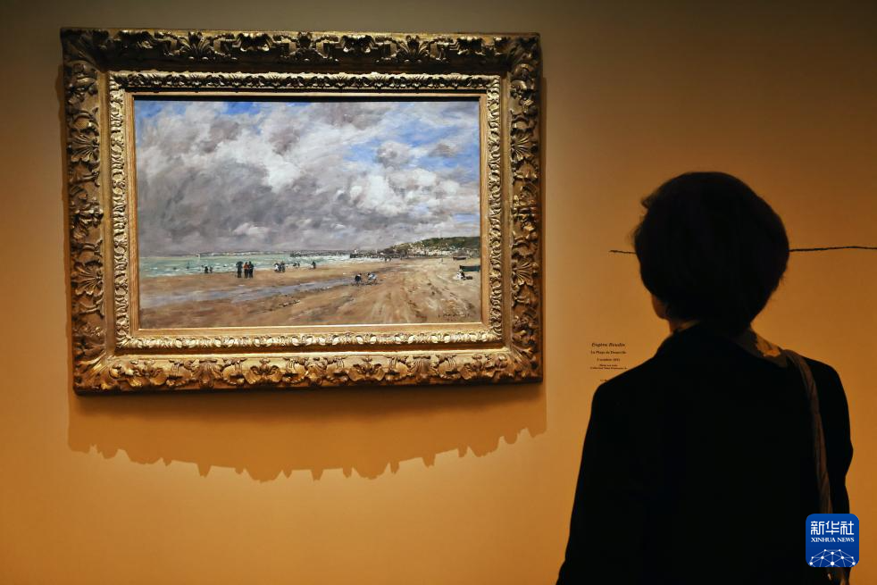 4月8日,在法国巴黎玛摩丹美术馆,一名观众在《“印象派之父”——欧仁·布丹》特展的媒体预展上参观。