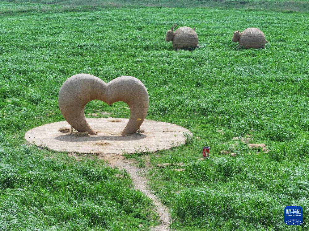 这是4月17日在湖南省岳阳市君山区微笑绿洲生态营地拍摄的芦苇艺术季活动现场(无人机照片)。