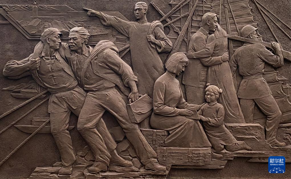 这是解放军文工团雕塑创作员郎钺创作的,以东江纵队抗战为背景的浮雕《南粤烽火 卫士先驱》。