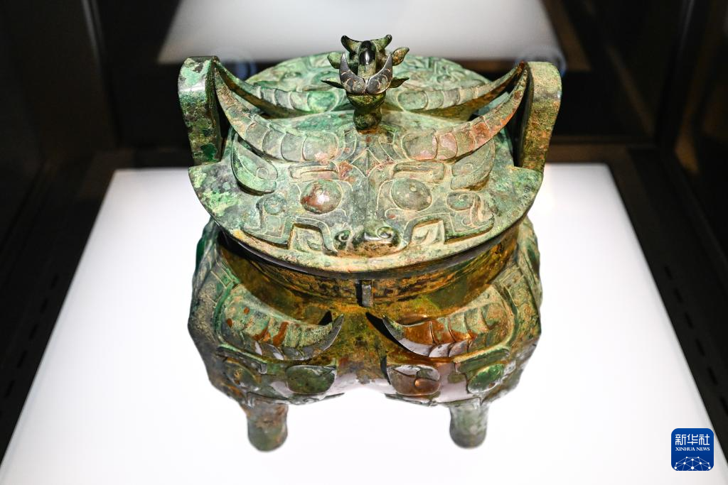 这是8月28日在展览中拍摄的牛头纹带盖伯矩鬲。