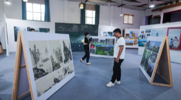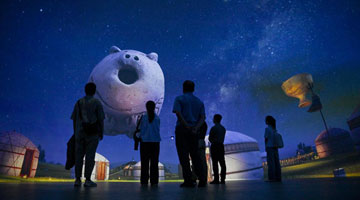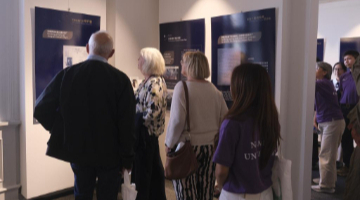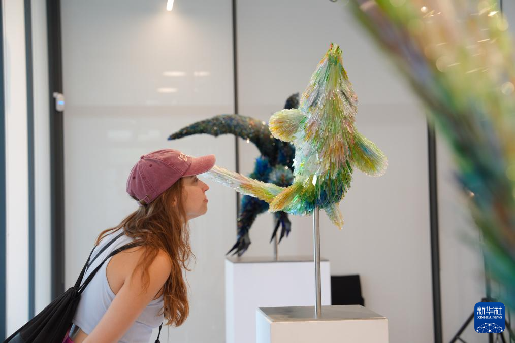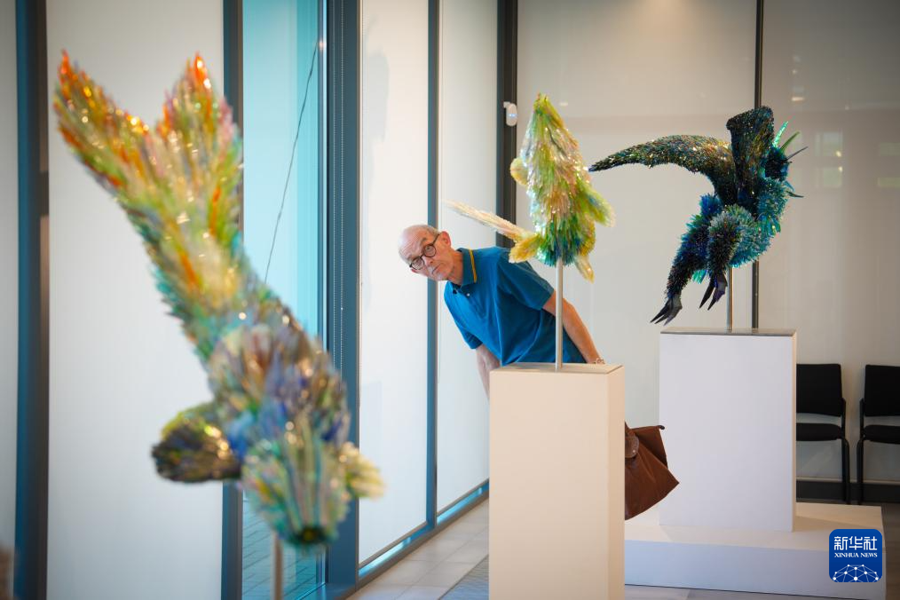 8月29日,观众在波兰首都华沙的乌尔申努夫文化中心欣赏玻璃雕塑。