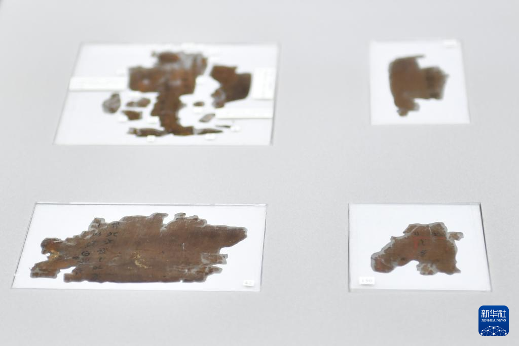 这是10月13日在湖南省博物馆拍摄的部分长沙子弹库战国帛书。
