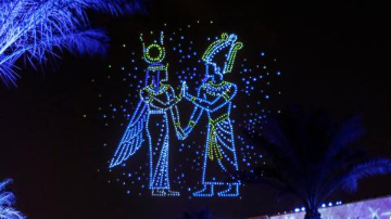 11月17日,民众在拉脱维亚首都里加举行的灯光节上欣赏灯光艺术装置。