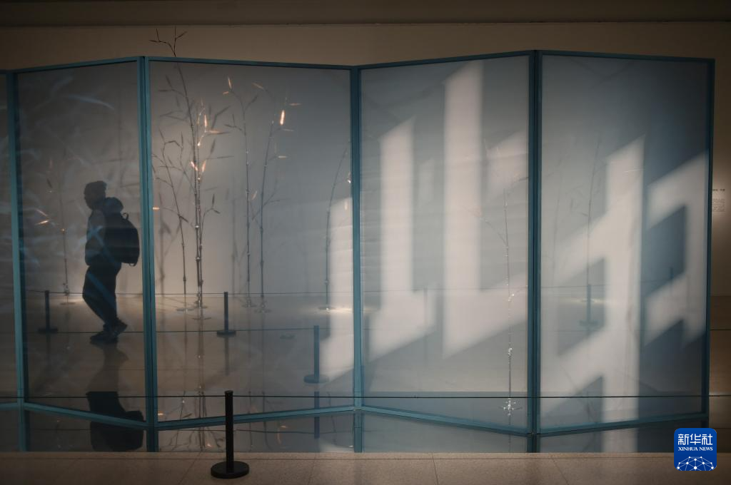 12月10日,观众在中国美术馆观赏展出作品《虹竹》。