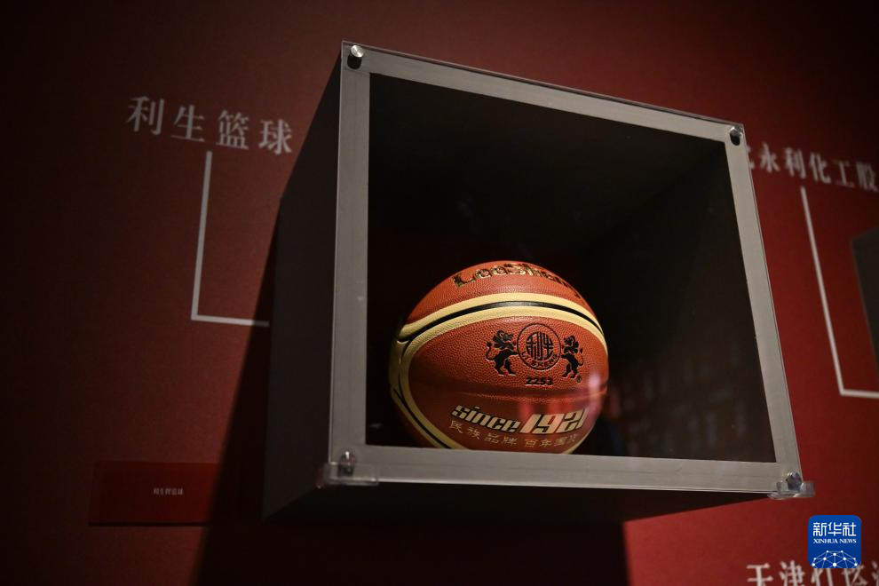 这是在天津博物馆“实业兴邦——近代天津工商业展”拍摄的利生篮球展品(1月13日摄)。