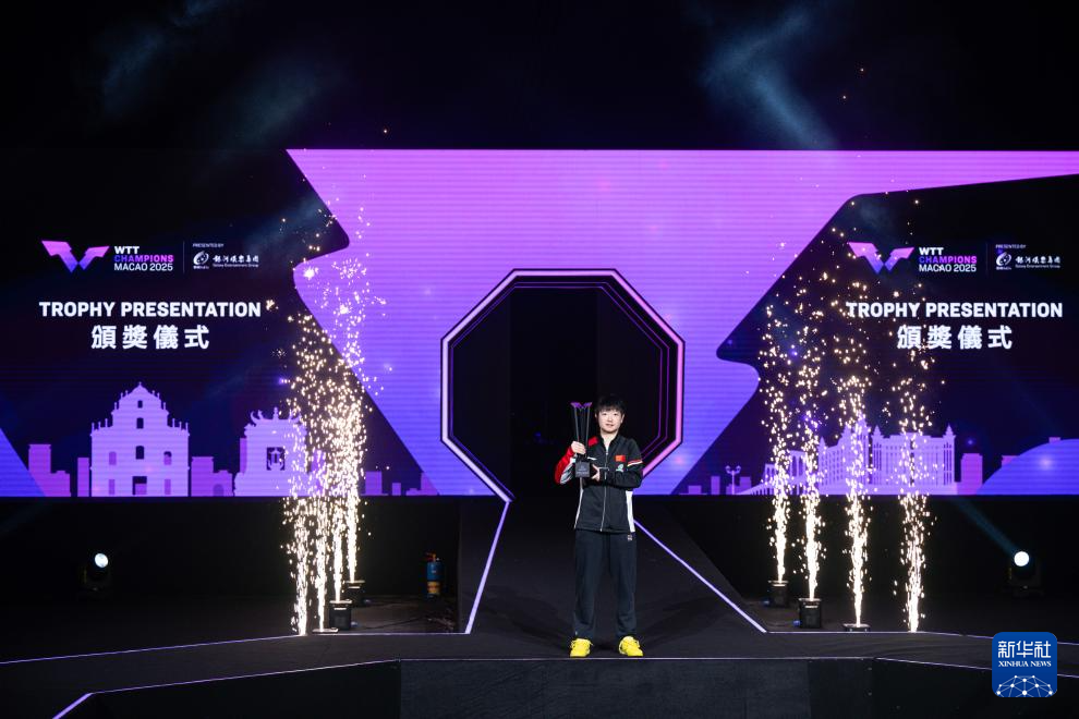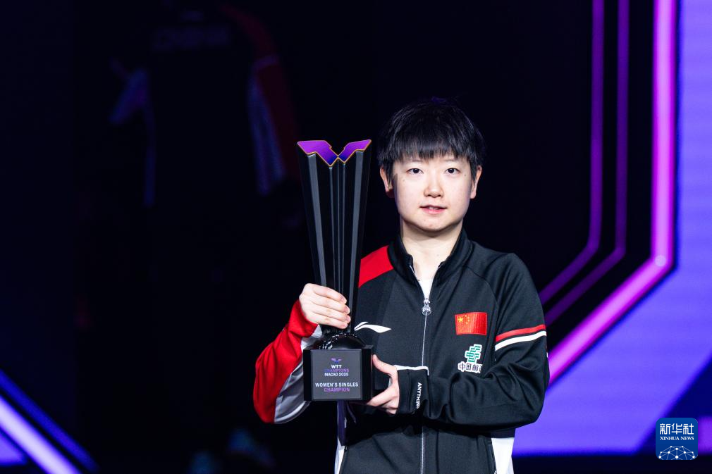 当日,在澳门进行的2025年世界乒乓球职业大联盟(WTT)澳门冠军赛女子单打决赛中,中国选手孙颖莎4比3战胜队友王曼昱,夺得冠军。