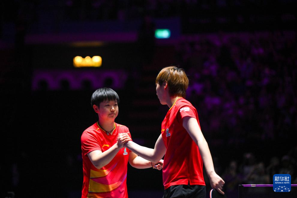 9月14日,孙颖莎(左)与王曼昱握手。