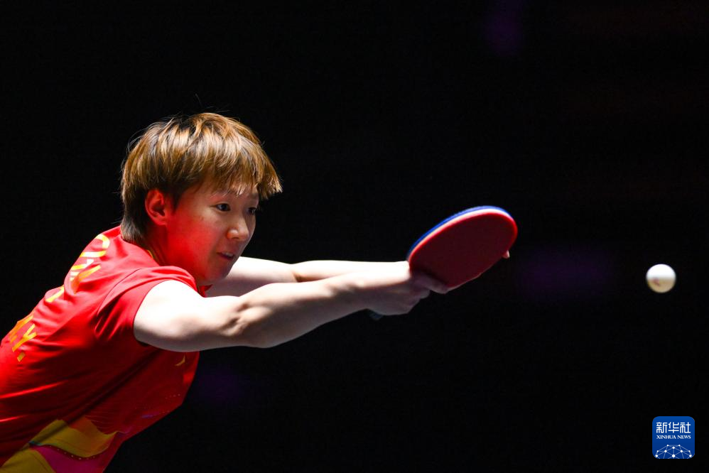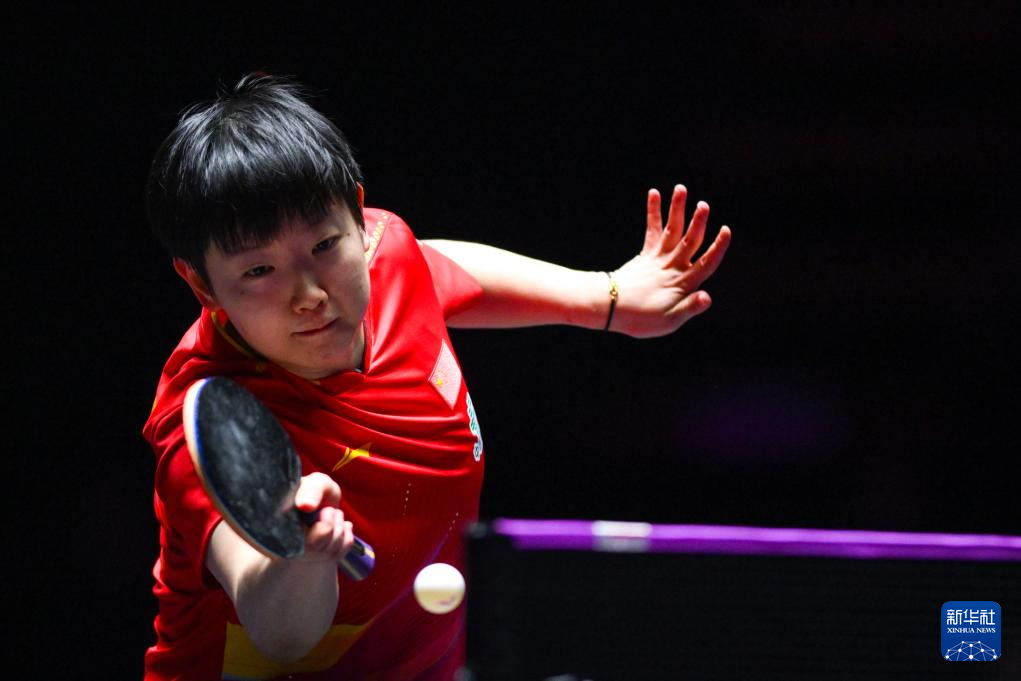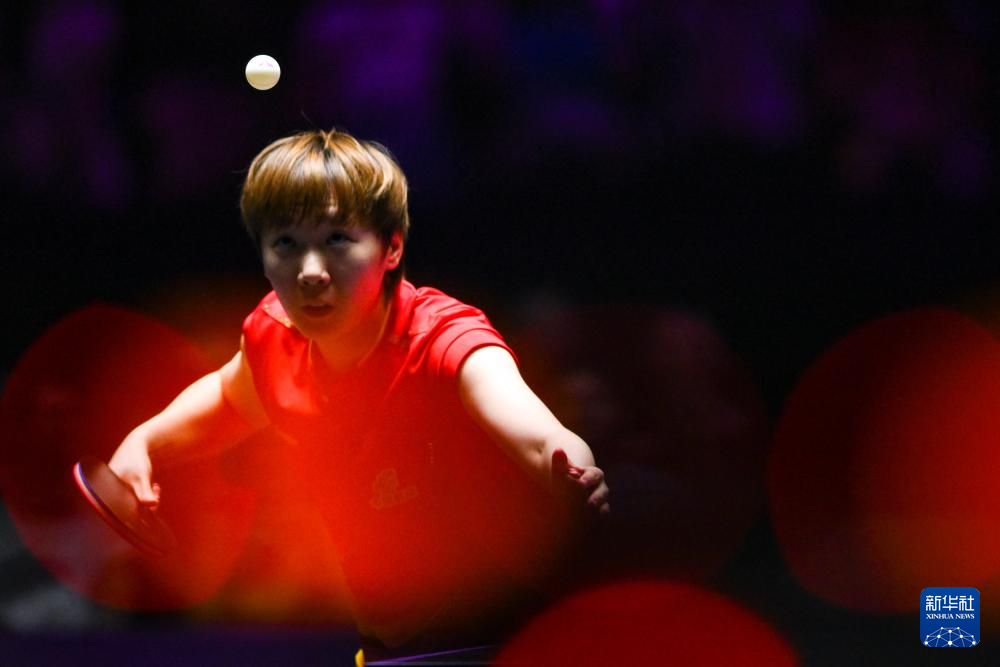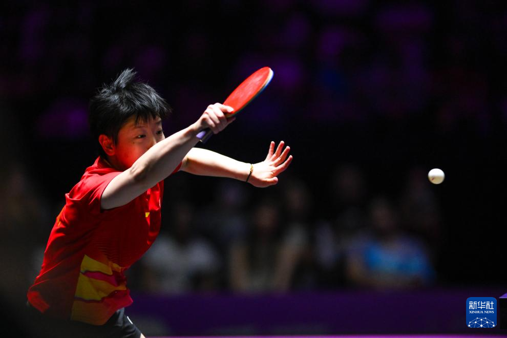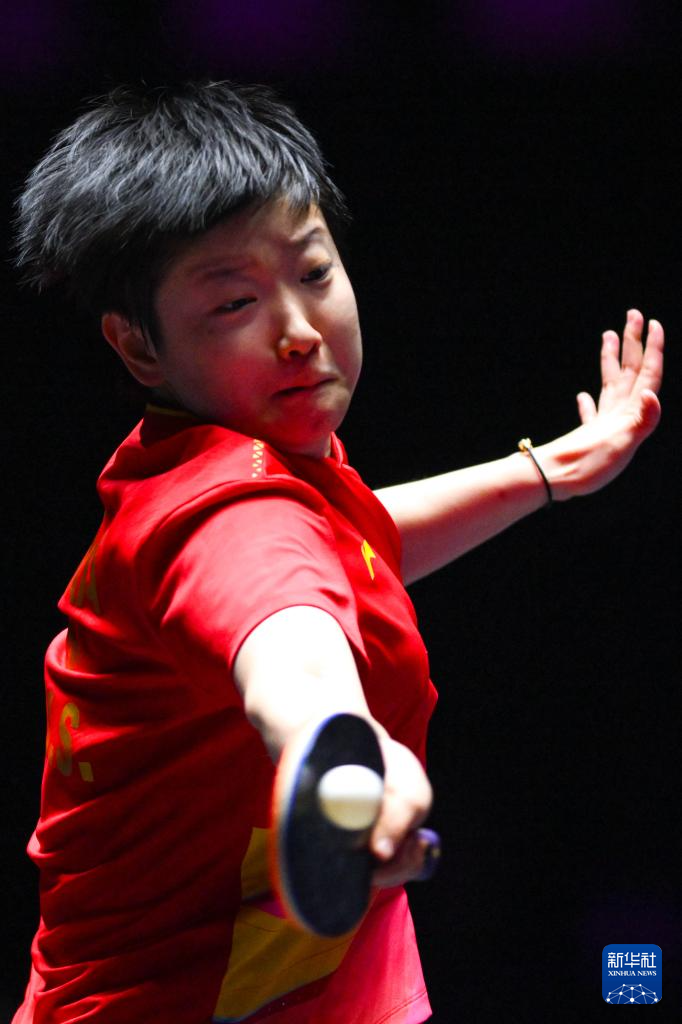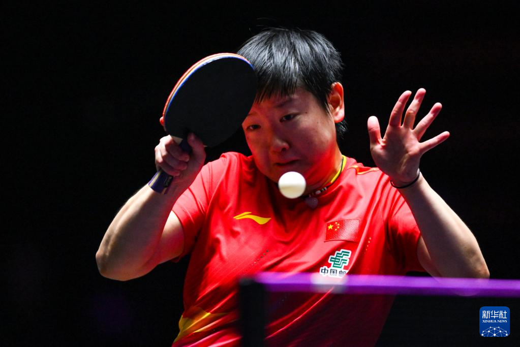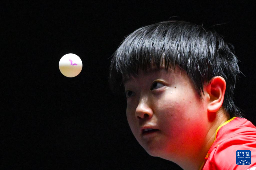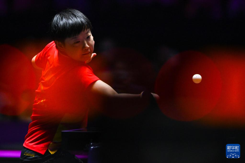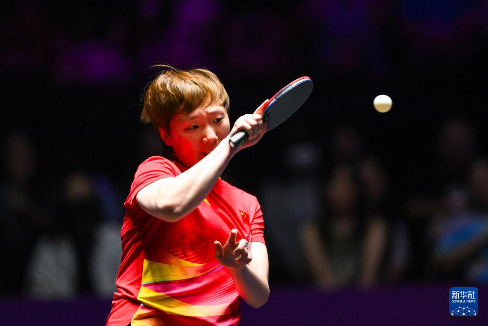 9月14日,孙颖莎在比赛中回球。