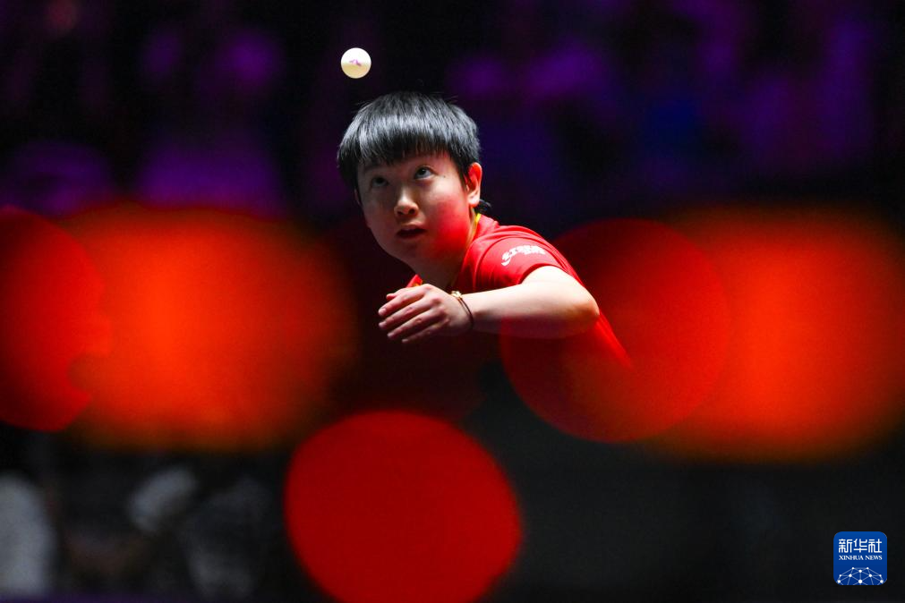 9月14日,孙颖莎在比赛中发球。