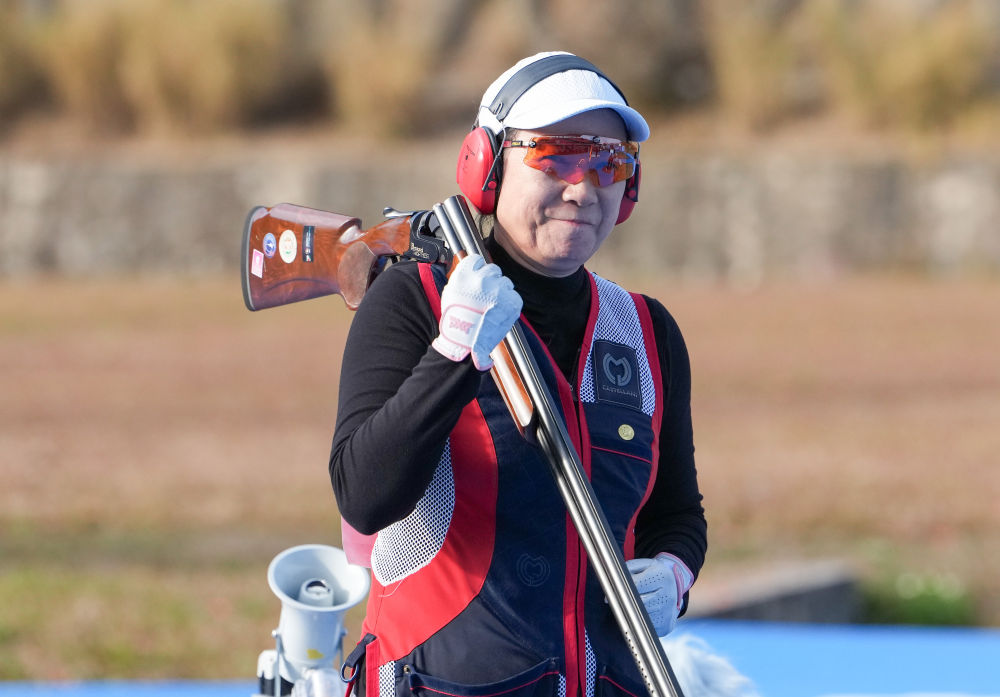 在射击飞碟项目多向混合团体决赛中,湖南队刘英姿再度站上最高领奖台。这是她的第八次全运之旅,上届全运会,她在个人项目中逆转夺冠。本届全运会,刘英姿在5次击发中打出三组“满分”射击,以22中收官。