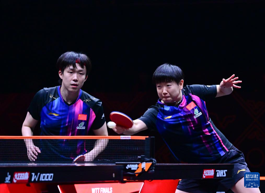 12月12日,中国组合王楚钦/孙颖莎(右)在比赛中。