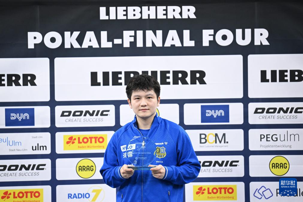 当日,在德国新乌尔姆举办的乒乓球德国杯决赛中,樊振东所在的萨尔布吕肯队3比1战胜富尔达-马伯策尔队,夺得冠军。