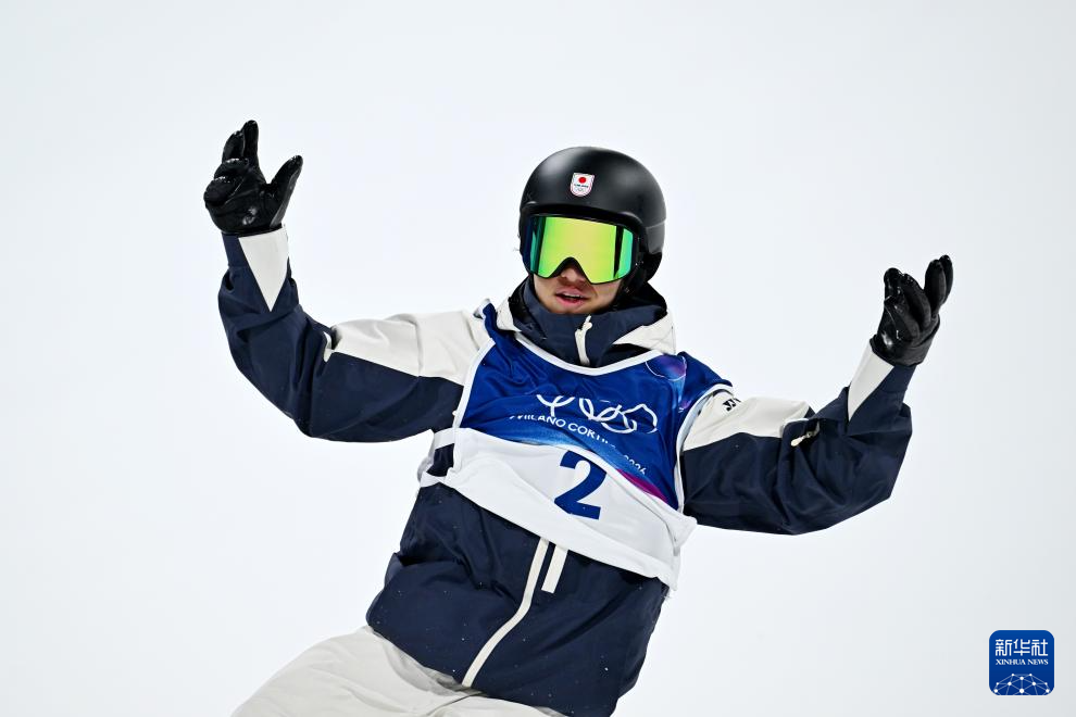 2月7日,日本选手木俣椋真在比赛中庆祝。他获得亚军。
