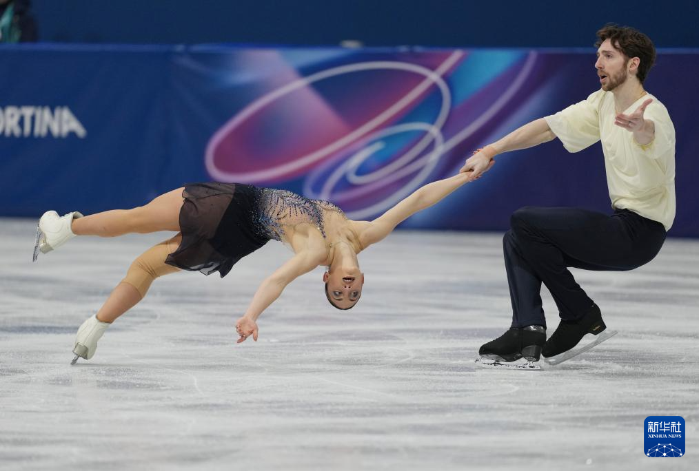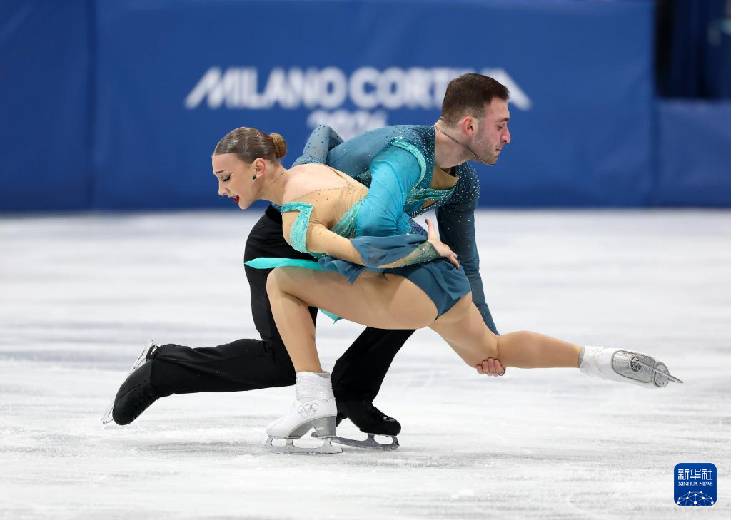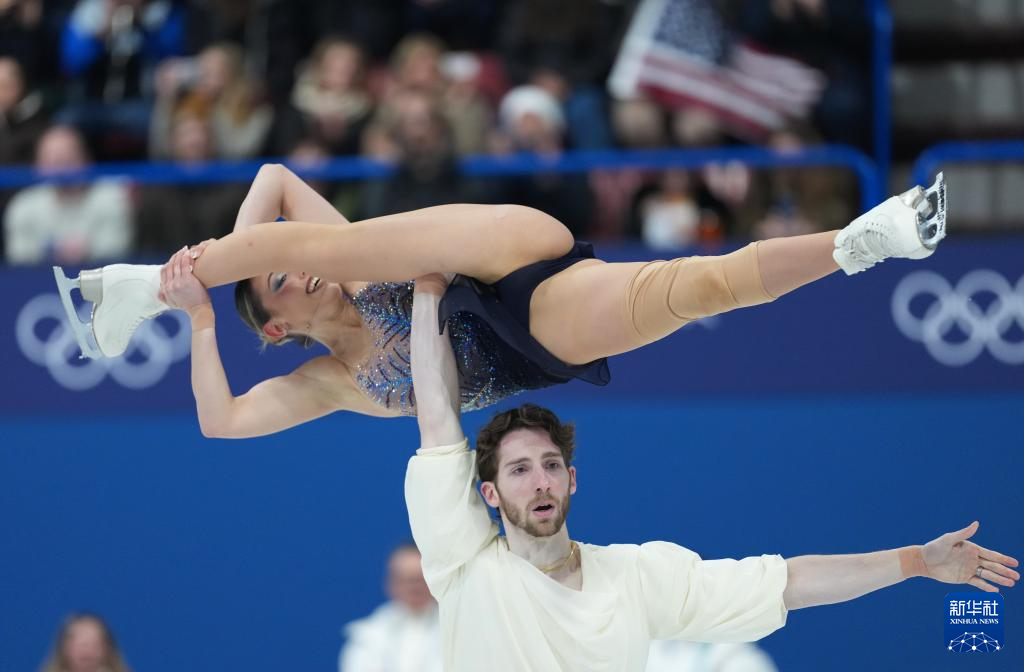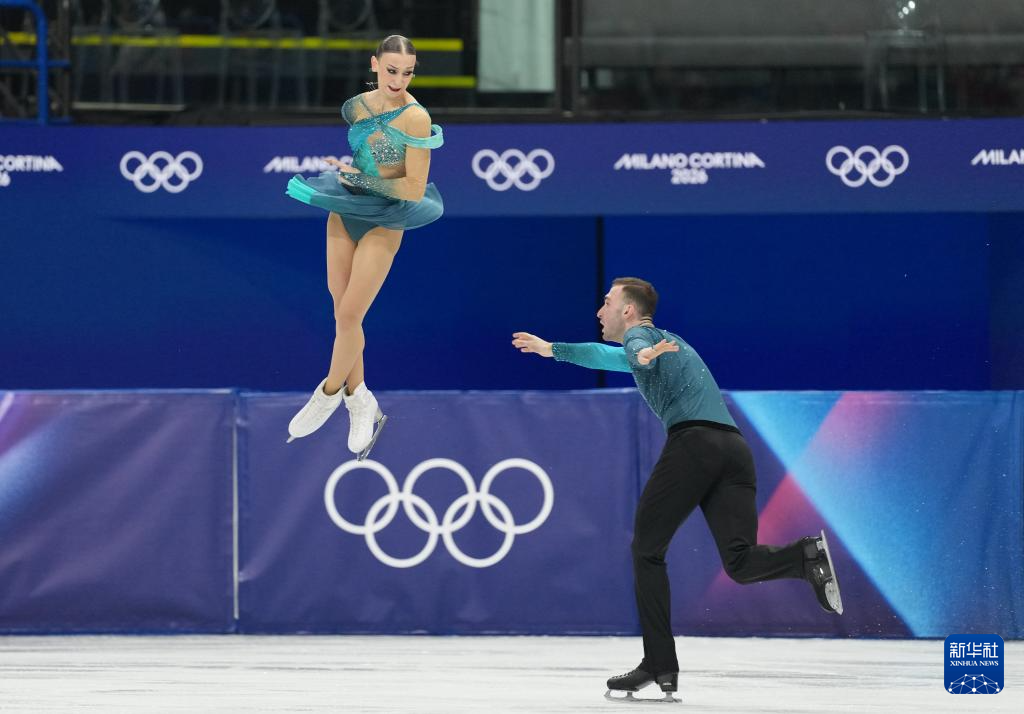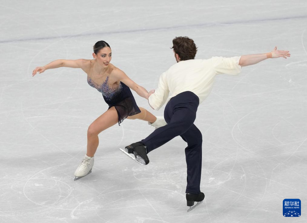 2月8日,意大利队组合萨拉·孔蒂(左)/尼科洛·马西在团体赛双人滑自由滑比赛中。