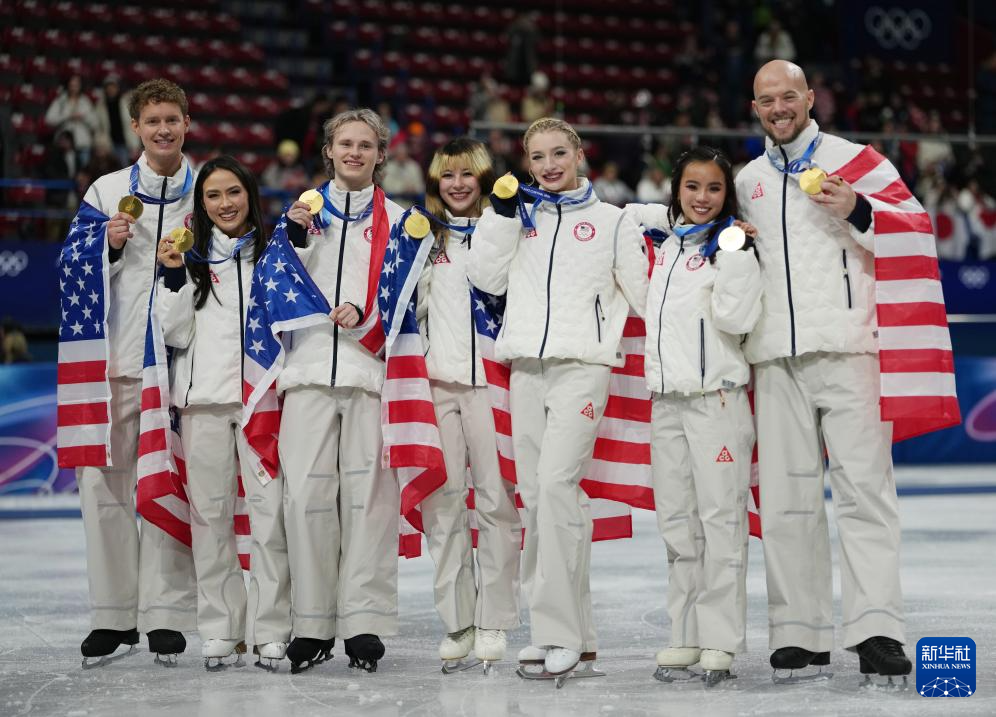 当地时间2月8日,米兰-科尔蒂纳冬奥会花样滑冰项目团体赛在意大利米兰举行。美国队获得冠军,日本队获得亚军,意大利队获得季军