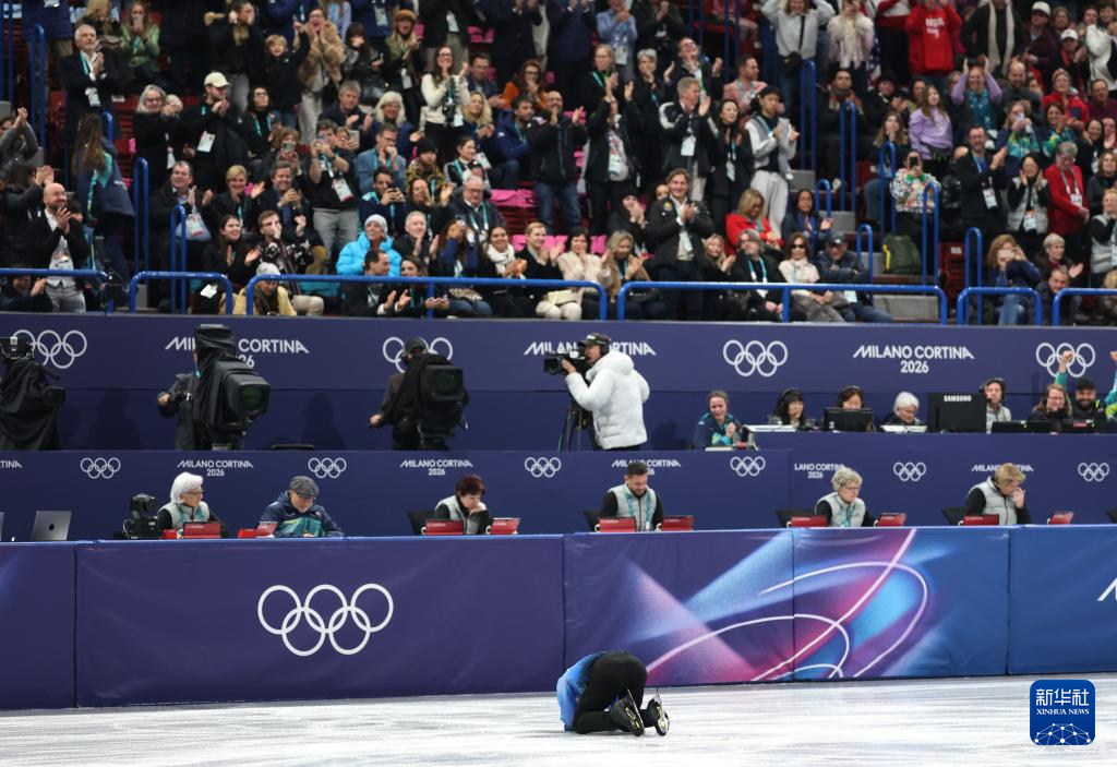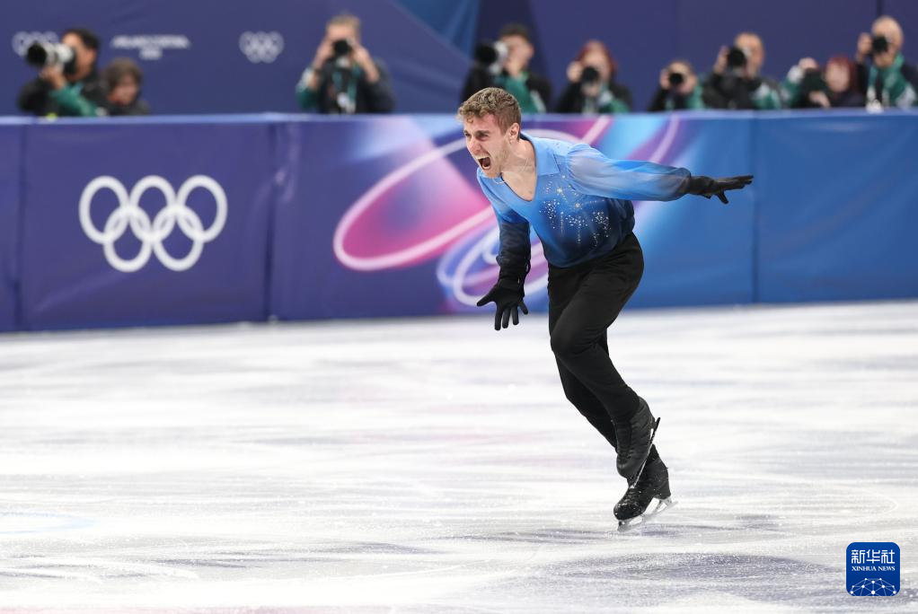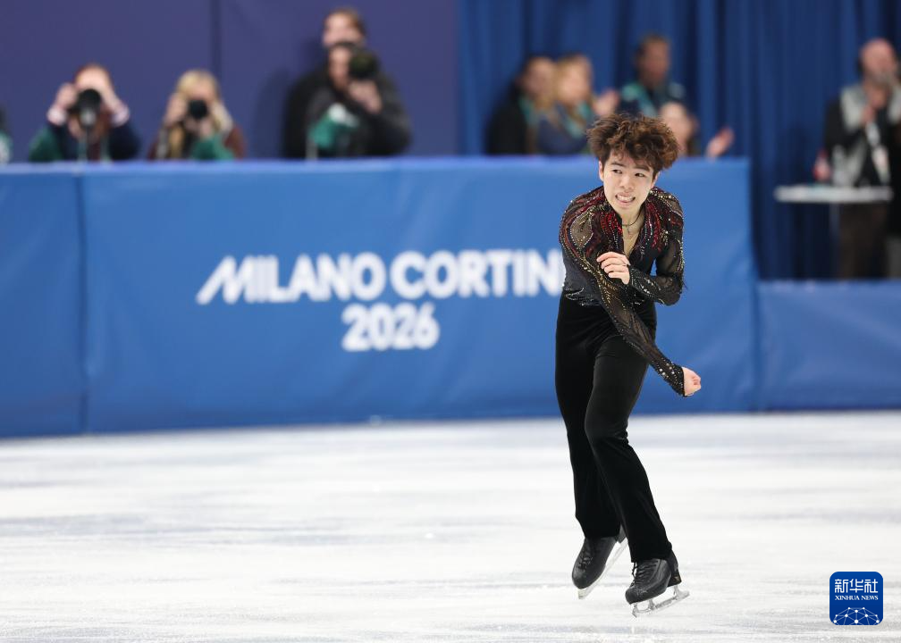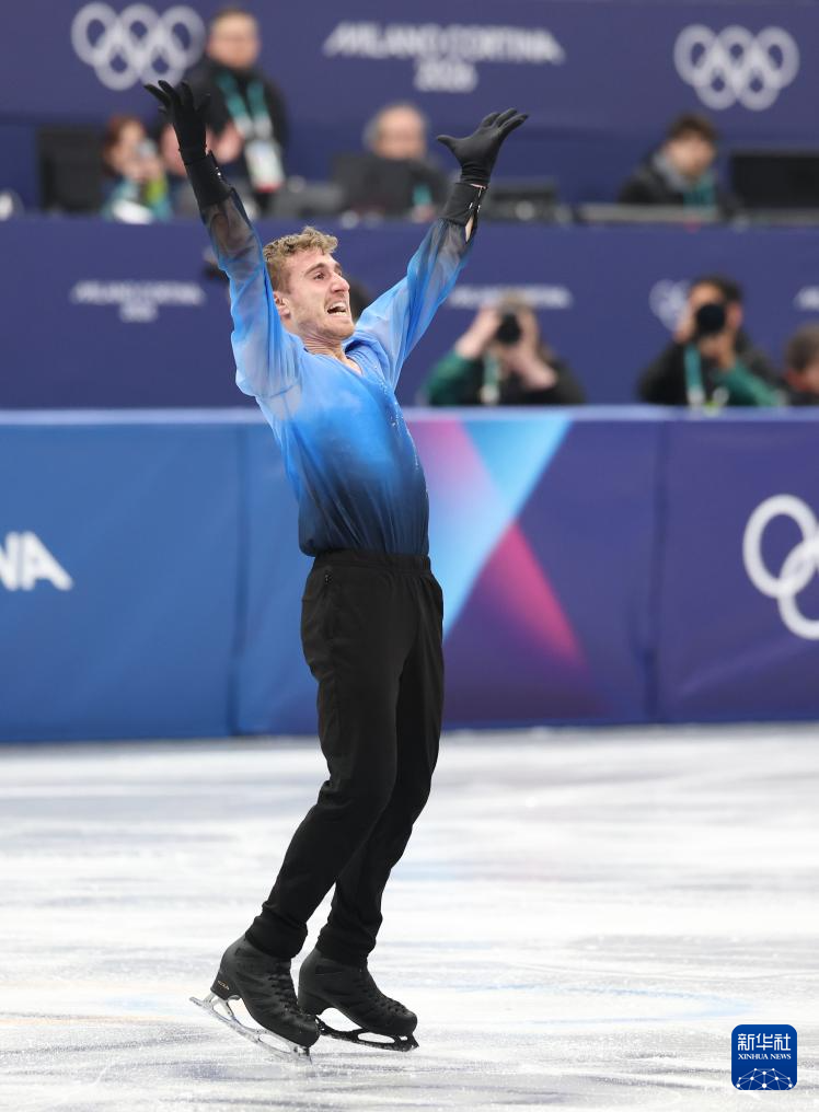 2月8日,意大利队选手里佐在团体赛男单自由滑完赛中。