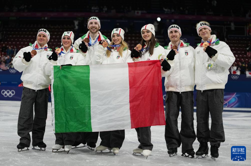 当地时间2月8日,米兰-科尔蒂纳冬奥会花样滑冰项目团体赛在意大利米兰举行。美国队获得冠军,日本队获得亚军,意大利队获得季军。