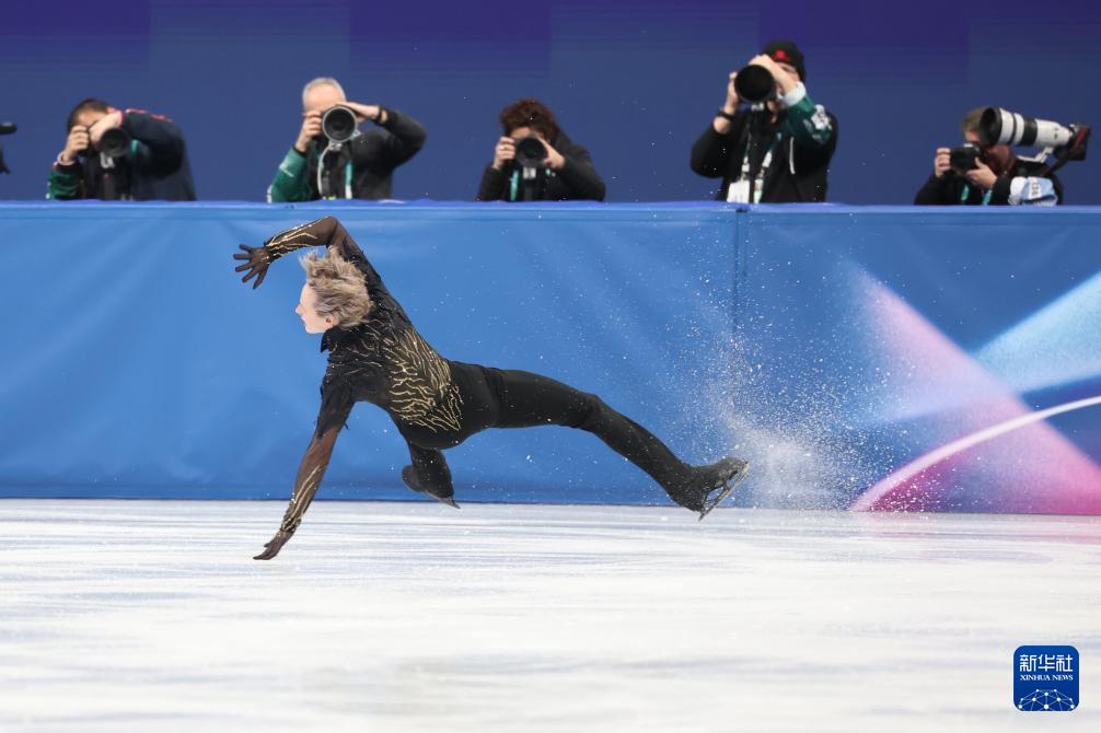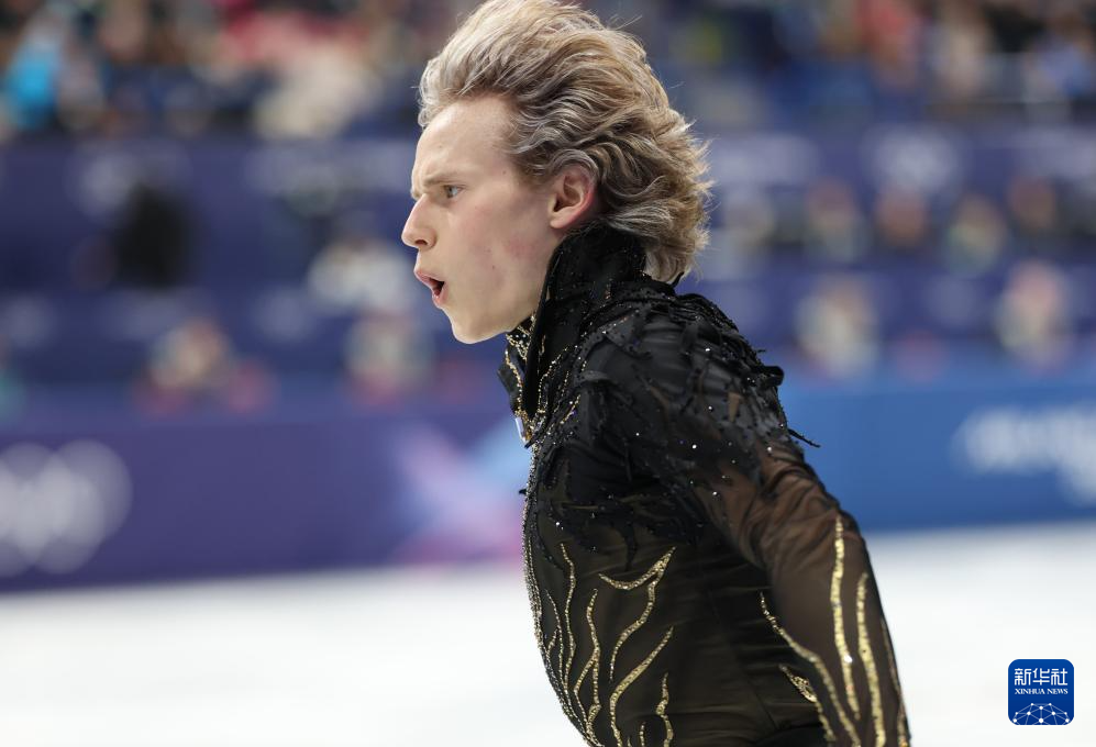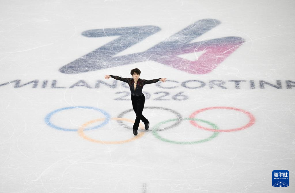 2月8日,日本队选手佐藤骏在团体赛男单自由滑比赛中。