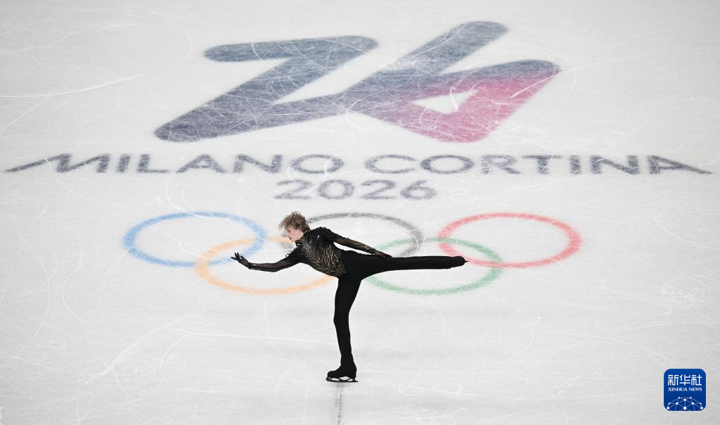 2月8日,意大利队选手里佐在团体赛男单自由滑比赛中。