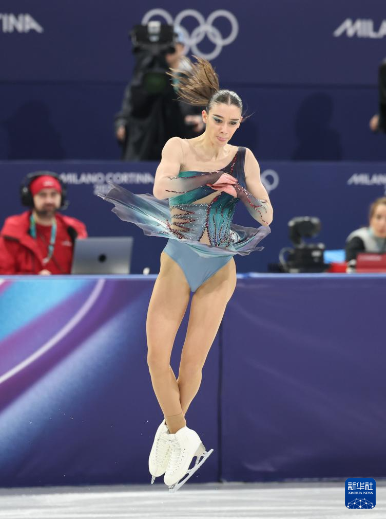 2月8日,意大利队选手古特曼在团体赛女单自由滑比赛中。