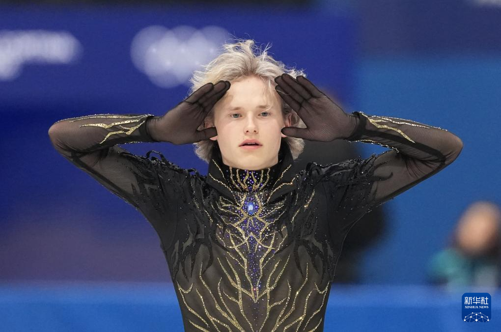 2月8日,美国队选手马里宁在团体赛男单自由滑比赛中。