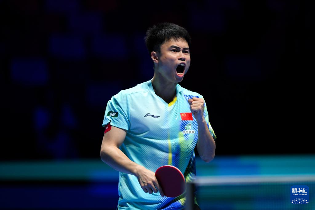 3月30日,中国选手周启豪在男子单打小组赛中庆祝得分。最终,他3比1战胜日本选手川上流星。