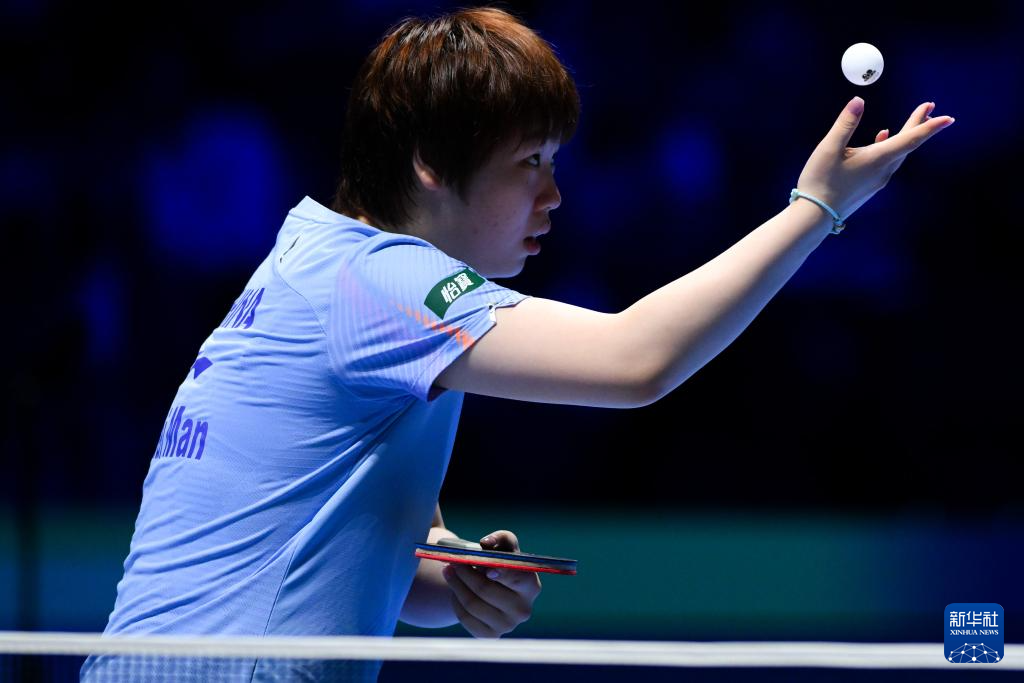 3月30日,日本选手张本美和在女子单打小组赛中回球。最终,她3比0战胜印度选手马妮卡·巴特拉。