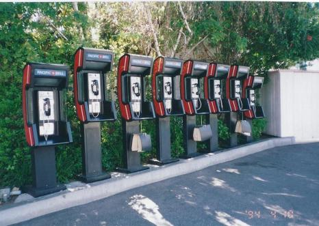 美国的电话亭大多是开放式的,那里的电话亭通常没有围挡,看起来比较简单。在美国的城市里,经常看到一排排的电话亭,电话机数量充足,使用电话的人几乎无须等待。在美国洛杉矶,就有很多这样成排的电话亭。