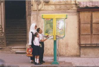 在埃及的亚历山大港,母亲带着孩子站在电话亭前。或许,孩子们要给远方的父亲打电话。从孩子们的眼光里,看到的是期待和向往。