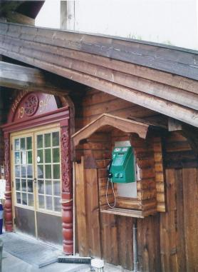 在挪威奥斯陆看到过一个木制电话亭,这个电话亭与木结构的建筑物在一起,显得很协调。