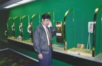 在上海火车站,一出站就能见到一排排的公用电话亭,一共有66座。南来北往的旅客在此打电话,这里是全上海公用电话使用率最高的地方。